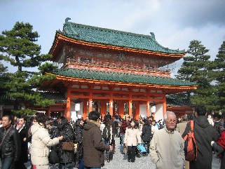 あけまして おめでとうございます。今年もどうぞよろしくお願いします。10年ぶりに日本でお正月を迎えて、やっぱりお正月は日本がいいな~と思った私です。白味噌のお雑煮を朝にいただきました。うーちゃんは日本に来てから、何でも日本のものを食べています。なかでも、おうどんとおそばが気に入った様子。年末に買い物に行ったときに、金箔の入ったお酒を買ってきてお正月早々飲んでおりました。お正月と言えば、初詣。日本で暮らしていたときには、元旦は家にいることが多かったのですが今回は観光客!と言うことで元旦早々初詣に行ってきました。まず、平安神宮へ。やっぱりすごい人でした!!バスで遠方からやってきている人も沢山いました。着物を着ている人たちもいてすごく華やいだ雰囲気でした。早速、おみくじをしたのですが・・・なかなか出てこなくて・・・・うーちゃんは凶!!私は末吉。年明け早々・・・と言う感じです。今年は良い年であってほしいのですが~。その後、みんなが歩いていく方向へ行くと、知恩院へでました。八坂の塔の前を通って清水寺へ~と行きたかったのですが、やっぱり清水寺周辺の道はすごい人。おまけにかなり冷えてきたので、日を改めて行くことにしました。体を暖めるのに一番良いのは・・・甘酒ですね~(私は飲んでいませんが)今日半日歩いてみて、やっぱり京都は良いところだな~と改めて思いました。