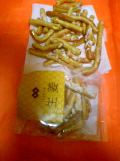 火曜日です バイト も少ししたら行くので その前に日記書いておきまーす。 理由は 明日遅刻しないようにって思いまして~ 今日は バイトも順調に進み 平穏な雰囲気が漂ってました~ しょうがかりんとう 昨日の御菓子と同じで つのせ の御菓子の詰め合わせに入っていた 一品です♪ こちらも いい味ですわ~(^_-)-☆ 甘すぎず 硬すぎず 丁度いい 噛み応えですね~(^^)v さ 明日水曜日は 午後から雨 かな~ 天気予報が当たればネ外れて 小雨にしといてほしいな~(^o^)/ では 風邪に気をつけてくださいね~ 又~