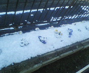 月曜日 バイトは順調に終えました~も少しで コンビニバイトが 二時間の残業になるとこでした朝 頼まれた時は そのつもりで行ったのですが、 他のバイトの学生さんが 頼んだ人の替わりに 定時に来てくれたので(^o^)/ 皆で 協力はいいな~ 日曜日に 地元に帰って 成人式に行った *君 オメデトウ♪ それと 今日は各地で雪が降ったり 積もったりしたのですね~大阪は 朝 パラっと降ったそうですが、 東海地方の知人からもらった画像です。 載せさせてね~(^o^)/ 雪 車のタイヤは 雪道用に 変えたそうです。 安心(^o^)丿 最近 夜バイト(深夜)から帰ったら 即 お風呂に入ってます。バイクに乗ってるとき 寒くて 歯をくいしばって お風呂場の湯気を 想像しながら帰ってきまーす(^_-)-☆ では 明日も 頑張ろうっと! 皆さんもね~