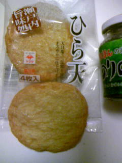 水曜日 バイトはゆとりがあった日です(^o^)/ 知人たちとメールとかで いろいろ打ち合わせも出来た日。 次の日曜は バイト替わって欲しいと言われ快くOKした。 何故って お互い様~だからネ 先日 日記に何気なく書いて なにそれ って感じしたので今日は 写真撮ってみました~ これ↓ ひら天 私 この前 平てん って書いたかな(^^ゞどっちでもいい気もするけど、 このひら天 は 4枚入りでお買い得価格! 味はいいですよ~ このまま食べて良し おでんや 煮物 炒め物もいいですね~(^_-)かまぼこや ちくわ の仲間ですネ 今夜の夕食は 味付けの牛肉と ピーマンと 厚揚げをガガガって炒めて みました~ 美味しいようでした~(^_-) さ 明日は セール日 頑張らなくっちゃ~皆さんも いろいろ気をつけてね~