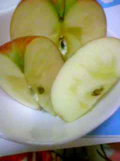 火曜日でした 晴れてましたねー(^o^)/ 洗濯物も よく乾いたいい日でした♪ バイトも 無事に終わったし(^_-)-☆ 先日 知人から とても美味しいものをいただきました。あまりに 甘くって 美味しかったので 載せたくなったんです。 山形県のりんご だそうですよ~ これは サンふじ かな♪ こんなに甘くて シャキシャキとした歯ごたえは 今までなかったですわ~ほんと美味しい(^_-) 写真では解りにくいかな 蜜がすごくタップリでした。 蜜は自然が与えた 完熟の証 と言えますネ♪ ほんと アリガトウm(__)m さあ 明日も週の真ん中日 頑張りましょうね~