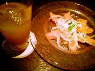 木曜日でした。皆さん お誕生日のお祝いのコメント ありがとう♪ 実際は見知らぬ方たちから おめでとうって!ブログの不思議 ブログの喜びですね~(^o^)/そして 実際の友人から おめでとうメール 嬉しいわアリガトウm(__)m 心がほんわかしたよ~♪ 今日も バイト 皆で協力して 成し遂げてきました。みんな ご苦労様~ お客様ありがとうございます。 せっかく撮った 昨日のお店での お料理等 今夜もUPだよん 記念だしね 店内 いい感じの照明のため 携帯では 色がうまくでてないけど上の写真は とろ鮭のカルパッチョ(だ~い好き♪)下は コラーゲンのカクテルなんですよ~(色もキレイ 味も良し(^_-) * 私が気になって調べた事; マリネ・・調理法 カルパッチョ・・料理名 日記書いてると 気になる事が湧いてきて どんどん時間経ちまーす。こんな 勉強家だった?! ってね(笑) さ 明日もお仕事頑張って!(^^)! お互いね~