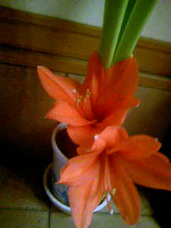 金曜日でした。 今週もほぼ終わりました♪ 今日は バイトに行った時 思いもよらない事がおきていた。 詳しく書けないけれど、 このことが私たち スタッフにとって いい方向に向くことを祈る。ていうより そうなるように 努力しなくっちゃ~(^o^)/みんな 頑張れ! 私も~! そうそう 以前にも載せた 私のアマリリスその後 どうなったか 画像UP 見てネ 花は4つも咲きました。 これは 一週間ほど前の写真ですのでこの後 4つの花が 満開に咲き、 順番にしぼんできました。今日は 思い切って お花をカット! 今は 葉だけが 50~60センチ伸びていまーす♪ ご苦労様~ アマリリスちゃん 美しい花をアリガトウm(__)m で これから どうするのか よく解らないけど、来年も鉢植えで咲かせれば ラッキー♪ ま 期待しないで やってみよ(^_-) 今回も こんな素晴らしい結果が出たので 上出来!画像を残してるし、 良かった~ さ 明日はどんな土曜日かな♪ 楽しい事を思いつつ待とう (^_-)皆さんも 幸せな週末をね~
