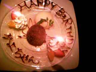こんばんは 水曜日日記ですおめでとう♪ 実は マイバースデー(^o^)/思い出せば 最高と言って良いほど いいお誕生日を迎えられました(^_-) 友人や 知人のおかげなんです。 皆さんありがとう ここ数回は プレゼントや ご馳走になった 美味しいお料理の画像UPさせてもらいますね~♪ 今日は夕方までバイトでした。 夜は 友人にステキなお店に、連れてってもらえました(^o^)/お祝いのお料理は コースになっていて 美味しいメニューがいっぱい♪ お酒もいっぱい飲んだのさ~(笑) コースの最後に登場したスイーツを 一番目にUP! 真ん中にあるのは ここのお店で自慢の、 フォンダンショコラ!中からとろ~りとした 温かいチョコが流れます お~♪ 他にも 美味しいお料理がいっぱいでした ほんとにアリガトウm(__)m 感謝してます 今日のハッピーバースデーを思い、 泣くとしたら うれし涙でーす(^^)v そんな私 これからもヨロシク~(*^_^*) では 明日からも 頑張りますネ 皆さんもお元気で~
