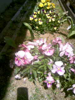 火曜日でした 通常通り この時間の日記更新に戻ります。今日は 世間では GW中 お休みの方多いですね~まだ 後一日ありますよ~ すごい♪ って人事ですが(^^ゞ 今日は 普通にバイトし 特に問題も無かった日で良かった~変わった事といえば かなり 熱くなってきてることかなこういう暑い日は 夜 帰宅してから キュッと飲めるものが楽しみです。 といっても 私は アイスコーヒーです(^^)vちょっと前までは 暑いお茶を飲むのが 楽しみだったけど。 先日 知人宅で過ごした時が 楽しかったので 思い出の画像UPしとこう 先ず一枚目 知人宅の花壇では ビオラや チューリップなどが かわいく咲いていました。 草引きなど日頃の手入れが 大変だろうな~ その分 見てると喜びも多いね(^_-)-☆いつか私が 30センチ位の椿を持って行ったのですが その椿も 私の背位に伸びていたのにも ビックリ(^o^)/ さ 明日も 働きまーす。 皆さんもお元気で~