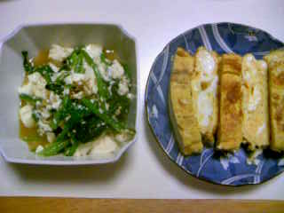水曜日 お天気良かったですね~ 暑かったかな 今日はバイトは夕方までで そのせいか 気分がゆったり♪こういう日は 気持ちと時間にゆとりがあって こうやって日記も早く書いたりしまーす(^_-)-☆ 自分の記憶のためにも 書いておいた方がいい事は 書こう。今年 マイカーの車検でした。 で 何事もチャチャっとできる時にしておこうって決めてるので(忘れっぽいので) つい先日 終わらせました(^_-) 今日は マイカーもガレージに戻り タイヤも新しくなり 乗り心地良かった~ 又 二年後まで 機嫌良く乗りたいな~マイカーに お世話になるよ~ って 声かけておいたわ ブルルン♪ って応えてもらえた~ (^o^)/ いつもより 時間あったので 夕食の一品も 時間をかけたと言ったら 笑われそう。 でも いつもは お塩をパラッとふって焼く卵焼き 今日は出し巻き的にしてみたのよ~ この前TVで100歳のおじいちゃんが 家族のために 美味しい出し巻き卵焼いてるっていう場面をチラッと見て以来 頭に残ってましたんで。 左は以前にも紹介したかな ヘルシーで美味しい一品としてほうれん草と豆腐と 煎りゴマと削りかつお の お出し和え。 自分の手作りを ユックリ 美味しくいただけました(^_-) では 今夜は 何か映画みますわ~皆さん 明日もお元気でね