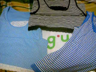 土曜日 皆さんいかがでしたか~私は 夕方からバイトだったのですが、 それまではフリータイム たっぷり味わいましたよ~♪ 朝は ユックリ眠れてました♪ 洗濯機も調子よく作動してくれてるのでタイマーセットで OK! 午後から 知人が用事で我が家にやってきました(^_-)時間は少なかったけど 会えて良かった~ラー君も お客様に喜んだり はにかんだり(^^)v その後 時間があったので お買い物にマイカーで!とても 久し振りで g・u. (ジーユー)に行って見ました。 以前買って とても気に入っている タンクトップの色違いを買ってきましたよ 以前は ピンクとか赤とか買ったので 今回は 黒や青系で(^_-) この生地は 何度洗濯しても 変わらず レースの部分もかわいいし長さがおなかの下まであるしお気に入り、 何といっても リーズナブルでーす。他のお店でも ちょちょっと買い物もしたし、 行って良かった(^_-) さ 明日も 夕方まで どんな日になるかな~皆さんも いい日曜日を~