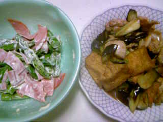 金曜日夜でーす 待ちに待った というか 一週間頑張った夜。今日は バイトはかなり忙しかった。 だけど ぜんぜん疲れもしないのは 気分的に落ち着けてるからだろうな~何らかのプレッシャーがあると 気分的にムリをしたり しんどかったりするものだけど、 今日この頃は大丈夫(^^)v 今夜は皆さん 何を食べましたか~ 私は 簡単だけど こんなおかずを作ったのです。 恥ずかしながら 載せよう フフ 先日 知人から 良かったらお料理して食べてネ って アスパラガスをいただきました~(^_-) 私 アスパラガスが好きなので嬉しかったさっそく 今日 ゆがいて ハムと一緒にマヨネーズ和え(^^)v 簡単! 右は ご飯が進む 鶏肉と厚揚げと 茄子の炒め煮 フライパン一つで簡単! 時短です(^o^)/ では 明日も元気に過ごしましょう♪