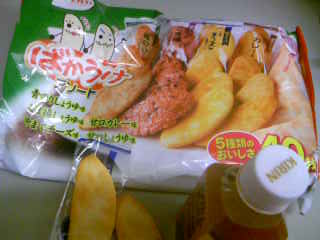 金曜日です 今週も 今日まで来て 嬉しいことでーす(^_-) 今日はバイトの方は 平和に終わり ホッ! 閉店間際に雨がきつく降ってきてビックリ。 今夜も自転車で バイトに行った私は バイクと違い カッパの用意ないし どうしようかって (^^ゞ ま 最悪 ずぶ濡れで帰っても 即行 シャワーで大丈夫(^^)v な~んて 考えたり バイト仲間に話したり だけど 帰宅時間には 雨もあがって ラッキー♪ 差し入れでいただいた おやつです。 誰もが ご存知と思う ばかうけ コレを見たとき ビックリしました。 こんなに種類があるのですね~ しかも この大きな袋に 40枚も入ってます♪ ほんと サクサクと美味しいお菓子ですわ。 私 チーズ味が気にいったわ~ アリガトウm(__)m さ 土日だよ~ ハーフのバイトは あるけど 休暇もできる皆さん お元気でね~(^o^)/