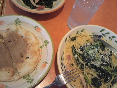 暑い日々が続いてますねー でも 又 雨が降るそうです バイトも 少しロングになったりして、 友人とも付き合ったりして 夏もあっという間に過ぎそう(^_-) 先日 友人と出かけた時食べた ほうれん草入りパスタとても美味しかったんです それがこれ↓ そして 又 食べたいなーと思ったので 自分でも作ってみました それが これ↓ 自分で簡単に作ったわりには 美味しい~♪家族も 美味しいと タップリ食べてくれました(^^)vこれなら 又 いつでも出来そう では 又ねー(^_-)