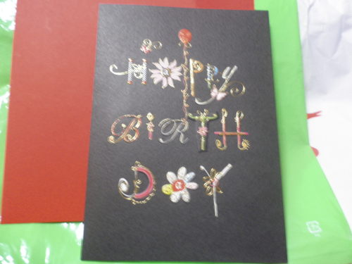 今日も いいお天気で何よりでした~ もう 冬物の衣類 洗濯済ませて 綺麗にして 次のシーズンまでクローゼットで眠っててもらわないと(^_^)v 今月 お誕生月 なんですが(*^_^*)ちょくちょく と プレゼント いただいてきてまする。少し ご紹介(記念に)紅い封筒を開けると 素敵なカードが HAPPY BIRTH DAY という文字が一文字 一文字 きれいに飾られていて(^^)/ 中には 自筆で 心のこもったメッセージが(^_^)v 嬉しかったです。 ハンカチ 大好きなほうなんで 使わせていただきまーす では 明日は セール日で いつもより早起き!(^^)! 頑張ってきまーす皆さん 土日 エンジョイしてね♪