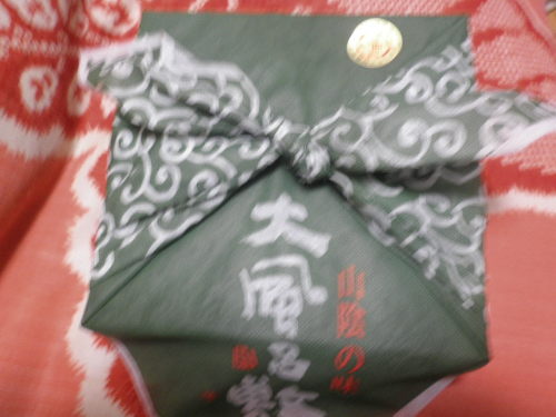 こんばんは~ つぶやき かな・・・ 第二章が始った。いや もう 第三章かも。いずれにせよ ポジティブ であることは 確信できる(^_^)v かなり前 ほんともう数年は経ってるから 日記でも画像さがせない友人から 美味しいお土産いただきました山陰の味 大風呂敷 という名の お土産です このお土産は 黄な粉餅 に 別入りの蜂蜜をかけていただきます。以前 この風呂敷を広げて写真撮ってるとき 当時の愛犬ラー君が傍をうろうろしてて 写りこんでた。 今回 愛犬ケー君は もっと近づいてきた(笑) 美味しいな~ 今日は お休みだったんでーす友人が誘ってくれて 美味しいお好み焼きをいただけました♪そして又 心に残るような事があったりして ハッピーです(*^_^*) 明日は ほんとは お休みなんだけど 職場の お客様 感謝祭なので出勤です 頑張ってきますねー では この辺で~