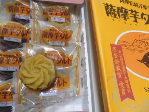 こんばんは~♪休日で とてもユックリできた日(^_^)v見逃していたドラマを PCで見たりできたし♪ 先日 友人から 九州旅行のお土産をいただいてました。まだ UPしてなかったかな薩摩芋タルトです。 これ ほんと 美味しい~さつまいもタルトと紫芋タルト 二種類入ってました どちらも又 食べたくなるお味でした~♪ 九州には 数回 旅行したことあるけど もう 何十年も前又 これから先 行けると 嬉しいな~ では 明日も 元気に過ごしましょう(^^)/