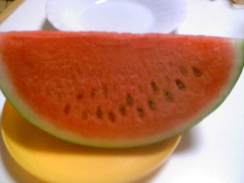 久しぶりの職場だった。先日から 二人の新人社員さんが 他店に移動していた。そんなことになる気配がしてたので 一応別れは惜しんでおいた。 他府県に移動になるという情報だったので、 出かけた時は会いに行くね って言うと 絶対きてください と(^_^)v きっといつか さりげなく 実行しよう♪ 離れていても どこにいても頑張ってほしい!(^^)! スイカの時期ですねーこれは 先日 とった画像 スイカが好きなので 時々買ってるといっても 今年は まだこの一個だけだけど(笑)暑い中 自転車で走った後だったし めちゃ美味しかった~♪ 明日は忙しいはず 久しぶりに 冷凍室にこもるかも。頑張って乗り越えようっと!(^^)! では この辺で~