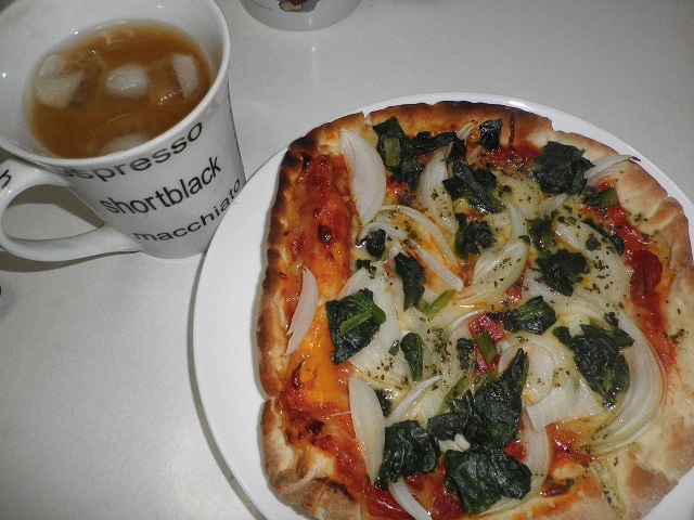 こんばんは~ 昨日は 無事に冷蔵庫を移動させて セットした(^_^)夏だったら スイカとか入れるのに 重宝したんだろうけどな。 まあ お野菜を買い込んだ時とか 便利かも♪ 先日 ピザがすっごく食べたくなって(*^_^*)多分 宅配ピザのチラシを 美味しそう って思いながら見続けたからかも、、、、単純(笑) それで 買い物に行ったとき 焼くだけのピザを買った。マルゲリータ を選んだ♪ 家で トースターで焼く前に ひと手間 + した。玉ねぎのスライスと ほうれん草を たっぷりトッピング満足しました~♪時々食べたくなるピザ(^_-) 今日は ピザトーストにしたけど、 又 UPしようかな。 では いい休日を~