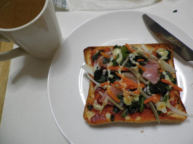 こんにちは~昨日は一日中 小雨だったりでしたが、今日は 晴れ。 ちょっと長めに歩いて お買いもの。スーパーでは 白菜が二玉で 100円!! これは 買わねば!って事で。 今日から白菜をタップリ食べよう(笑)昨日 TVで料理番組見てたら、クリームシチューに 白菜を入れてた。 それも ありなんだな~ って思ったので 今日作ろうかな。先日書いてた 作ってみたピザトースト♪チーズがなかったので マヨネーズで(^_^) 美味しかったです♪ では お元気でねー