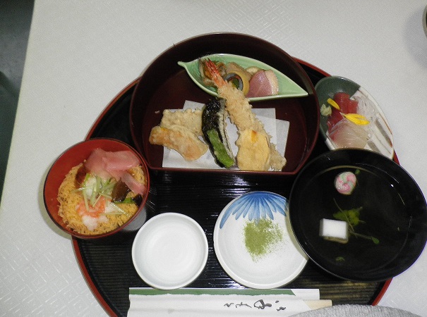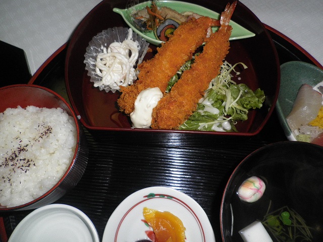 もうすぐ 同期生との同期会というか 忘年会がある。今回は 前回より 人数が増えている。 予約を入れてから二人追加があった。 皆さん 参加したいという気持ちが強いから 都合を付けておられるみたい(^_^) 一年半前は 見知らぬ人たちだったのに、、 縁だな~ 先日 夕方からの職場の人から お土産をいただいた。画像撮るの忘れたけど 丹波の黒豆入りのお菓子(^_^)とても美味しかった~♪ どこに行って来たのか聞いてみたら 福知山って答えが。私も行ったことあるわ って言ったら 福知山マラソンに参加したらしい。 いつだったか 趣味に忙しいと聞いた事があったけど マラソンのことだったんだな~!(^^)! こちらは 京都の伏見稲荷で食べたお昼ご飯。 やっぱり 海老フライを選んじゃう♪ お刺身も おすましもついて 美味しかったでーす。では 明日も お元気で!