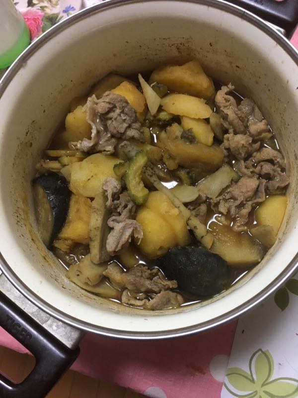 こんばんは~ 涼しいですねー夜勤明けの今日でした。創味シャンタン 使ってみました。写真は撮らなかったけど、 一番簡単にともやし炒めに(^_-) 美味しかった~♪もやしは炒めすぎず シャキシャキ感がたまらん(笑) 明日は ロールキャベツに使おうかなその時は 写真撮っとこう(^^)/いいお味だったので 買って良かったです♪自家製のお野菜をいただき 全部煮物にして食べたので 画像UPします。無農薬で作ったそうです。じゃがいも さつまいも 茄子 ゴーヤ ごぼうぜんぶ 入れちゃいました(^_^)v ありがとう ご馳走様~ 明日も 頑張りましょう