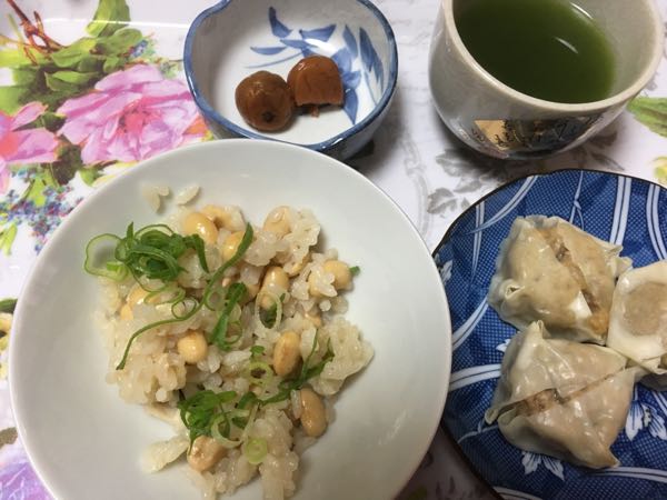 こんにちは~♪今日は 仕事は夕方から、 なので ゆっくり(^_^) 冷蔵庫にあるものを 使い切ろうかなあった~ 大豆の水煮♪ そこで 作ったのは これ 大豆ごはん?! お米とこんにゃく米と 大豆水煮 と 出汁代わりに椎茸 味付けには 創味シャンタン どんな感じになるか 想像できなかったけど、、美味しかった~ お豆類好きな私には グー!では 今夜は夜勤 頼まれた日なので 頑張ってきまーす