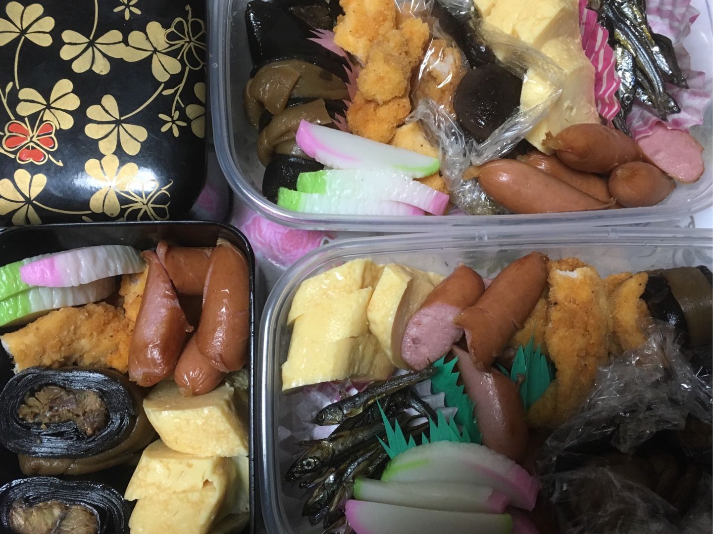 こんばんは~ 仕事の合間にいろんな事するのって 慌ただしい でも やってしまいたいので 頑張りました。 月曜日は 23時までの仕事があり 帰宅して 明日の準備や 家事の ゴミ出しの用いと やっと 今 お風呂終わって 寝れそう(^_^) 明日はもう 洗濯を干すくらいで 出掛けられる♪ おせちというほど でもないんだけど、 タッパーに 詰めてみました♪ みな同じ材料です(^_^) 黒豆や 栗きんとんは 別の 器にいれてます。 これで 何となく安心(^_-) では もう今年の大みそかになりましたね。 日記でのお付き合いありがとうございましたm(__)m この一年 健康に過ごせたことが 何より嬉しい私です。 あなたの 来年の お幸せを祈っております♡