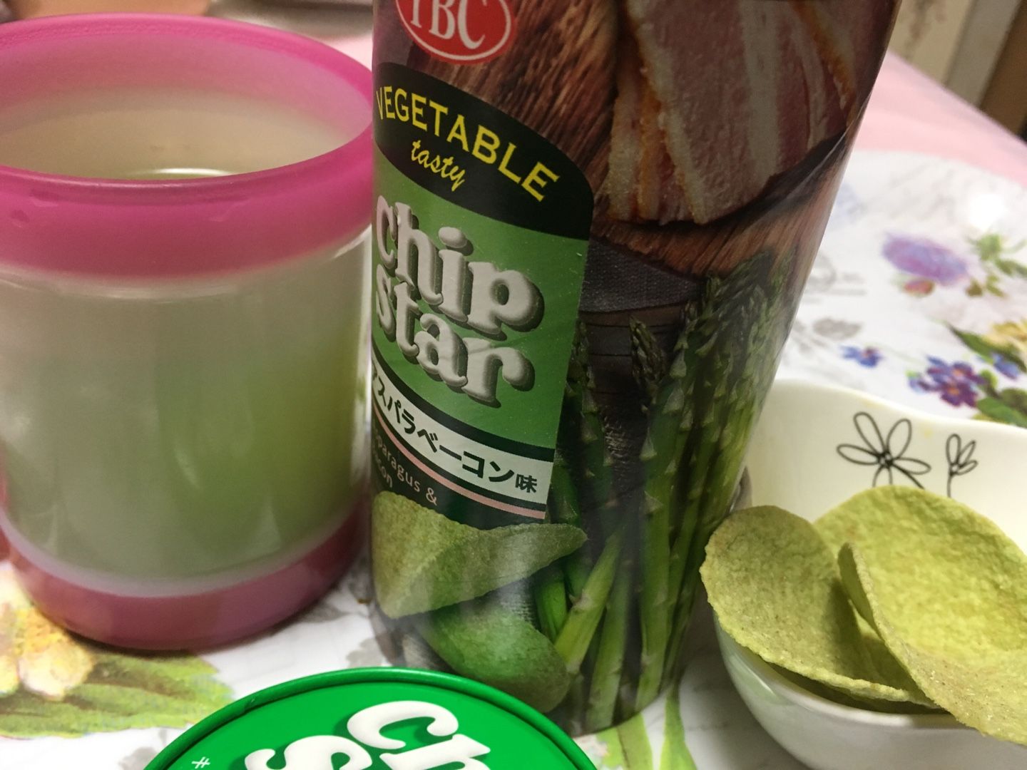 こんばんは~ 先日 見てビックリしたもの それはこのお菓子 チップスター アスパラベーコン味 家族が買ったのか 貰ったのか テーブルの上にあった。 最初 気にもしてなくて 何なのか。 ある時 掃除中 これを持ち上げた。 え! これって 食べ物? 何? よく見ると チップスターだ~ 箱が地味だったので お菓子とは思ってなかった(^^ゞ アスパラ そして すごいグリーン そうなると どんな 味なのか どんな形なのか 気になって仕方なくなった(笑) 一週間以上 置かれたままだった、、、結果 私がもらう事に 、、 こういう事 あるあるです。 初めての蓋を開ける時とか ワクワク♪ ここにも ささやかな 喜びあり(^_-) そして わ~ 緑 野菜 形はチップスター 美味しい~ アスパラです♪ 気になる方は 食べてねー