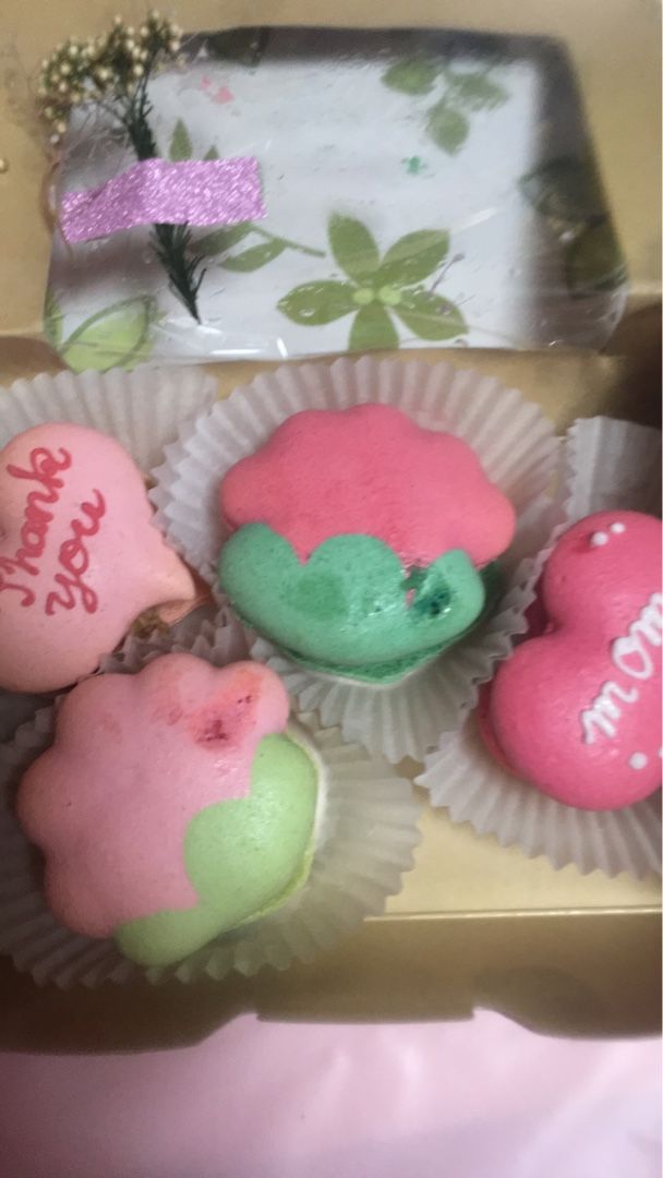 こんばんは~ 今日は母の日でしたねー♪ 午前中実家に行き 母の日のプレゼントを 渡す。 とても喜んでもらえた。('_') 90歳をこしても 嬉しさはあふれてる母。 そして夜 仕事から帰宅して ゆっくりする。 その後帰宅した家族にプレゼントをもらう。 とても かわいい マカロン♡ 食べてみると すご~く美味しい(^^♪ ありがとうm(__)m まろやかな甘さと クリーミーさ 最高でーす。 幸せな 母の日となりました~(^_^)/~