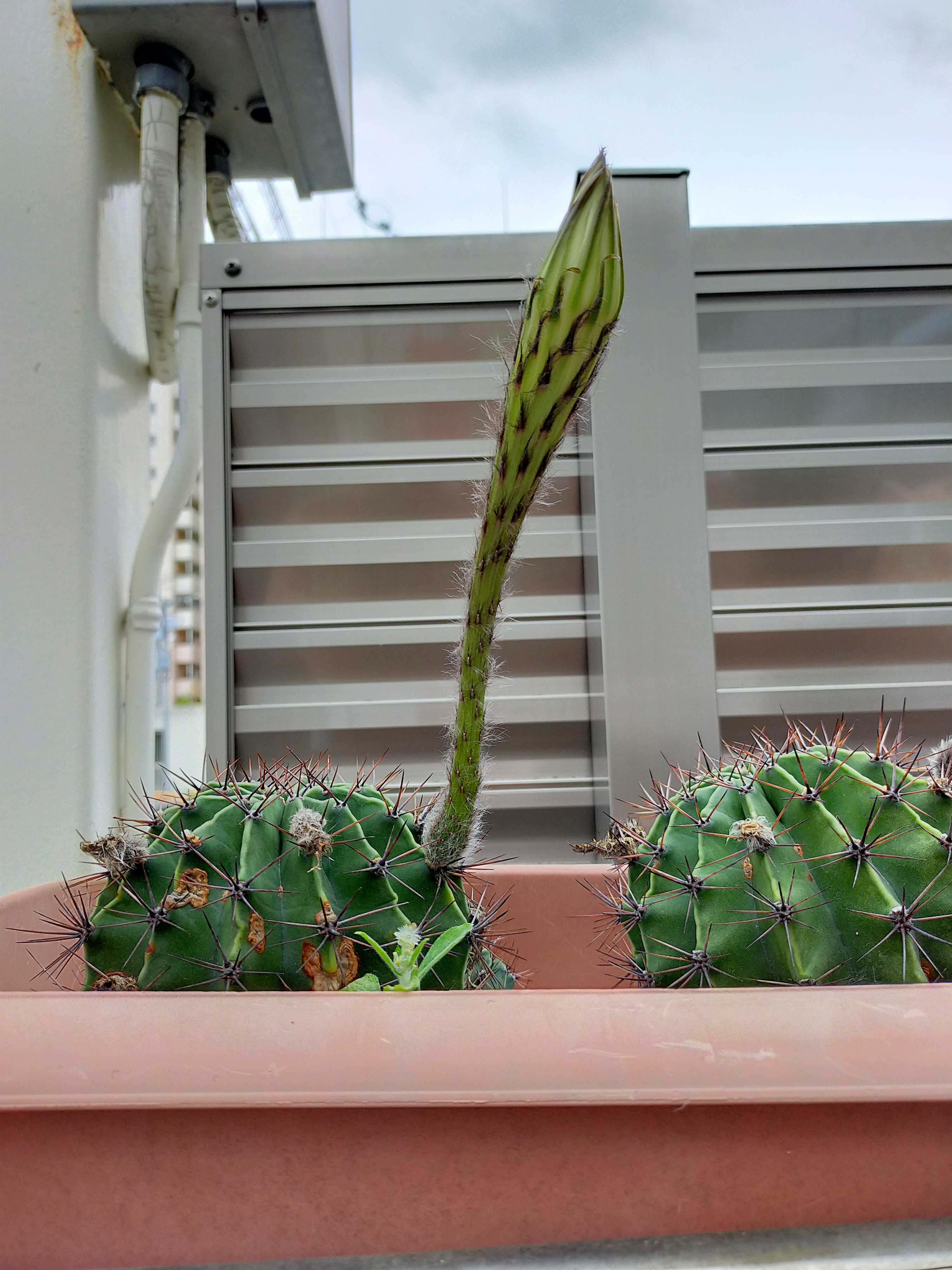 こんばんは~♪おかげさまで 日に日に良くなってます。家族や 知人の 親切にも感謝の日々でーす♪久しぶりに 様子を見たら うちのサボテンさん又 一輪 こうなってました。昨夜と 今夜の様子です。多分 真夜中に 大きく咲ききるのでしょうねー サボテンてすごいなー 見逃さないで 良かったです。 咲いてくれてありがとうm(__)mでは おやすみなさ~い(^_^)/~