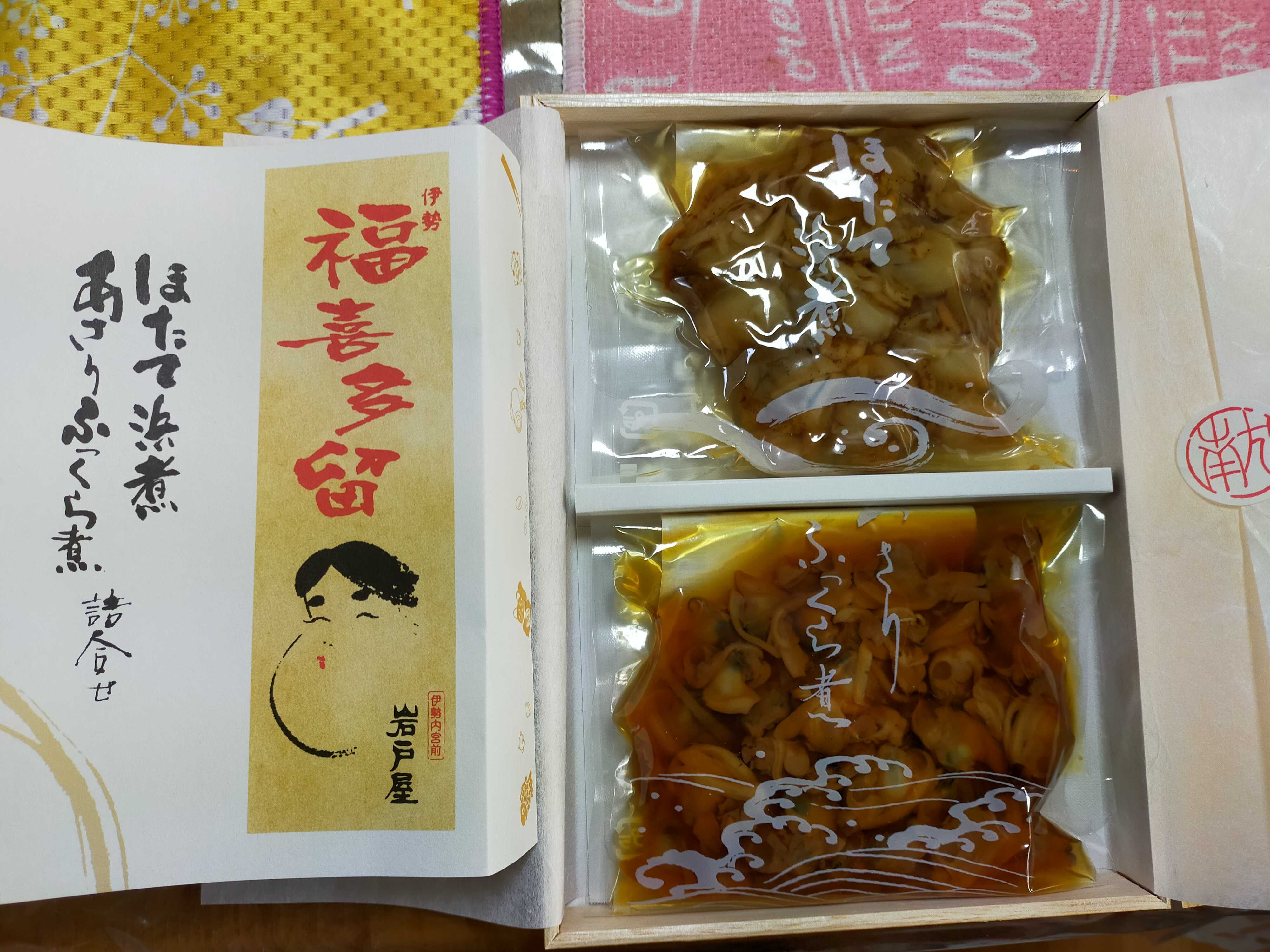 こんにちは~♪今日から仕事始めています!(^^)!今日は普通ごみの日ですが 4袋もゴミだししました。 出せて スッキリm(__)mお正月にいただいたお土産など 写真あるので載せときますね。知人が伊勢神宮に一日に行ってきたそうで美味しいお土産買ってきてくれました~ これは 美味しかった~ほたて と あさり ありがとう♡家族と 笑顔でいただきました。家族が友達からもらったお土産です。誰から は聞いたけど どこに行ったかまでは聞いてないけど おそらく 嵐山 と思います。このみたらし団子は大きくて 串に三個刺さってて とてもいいお味でした~ 私 二本食べました フフ 一日一本です♪ 家族よありがとう お友達よありがとう☆ではこの辺で~ (^_^)/~
