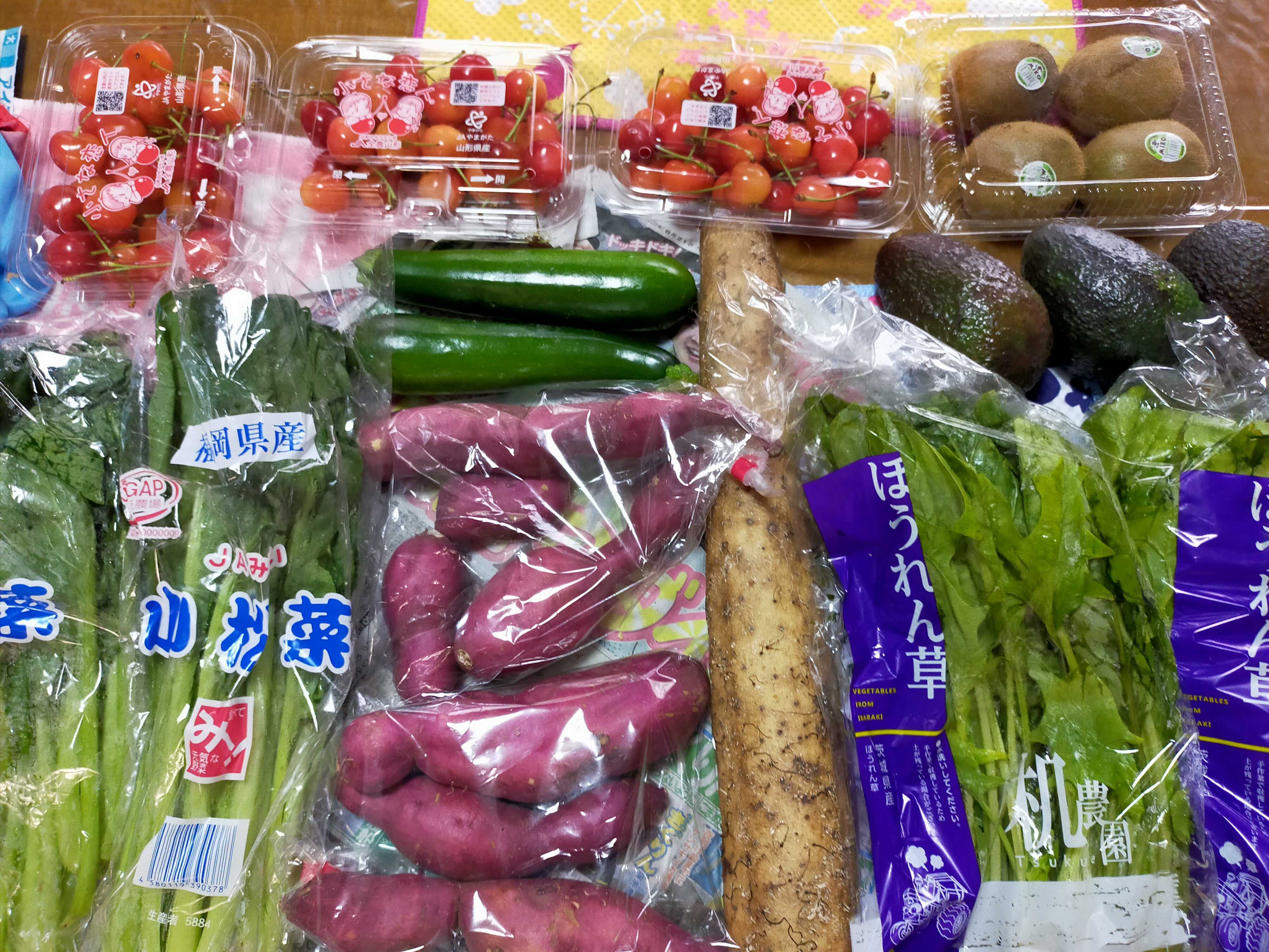 昨日はお野菜を買いに行き いっぱい買ってきました。 ズッキーニとか お料理するのが楽しみ♪一番気に入ったのは さくらんぼ でーす。Ⅰパックで良かったんだけど お店の方のお勧めで3パック買って帰る(*^^)v でも買ってよかった~とても甘いし 美味しい。 お店のおばさんは 余ったら冷凍にしてたらいいよ と教えてくれたけど それはしなくても 食べてしまいそう フフ たまにはいいでしょう('_')前回はすももを 多めに買ったけど 置いておくと より甘さが増してたし 果物 はいいなぁもちろん お野菜も好き。いい色のさつまいもも 炊飯器で又 炊こうかなぁではこの辺で~ (@^^)/~~~