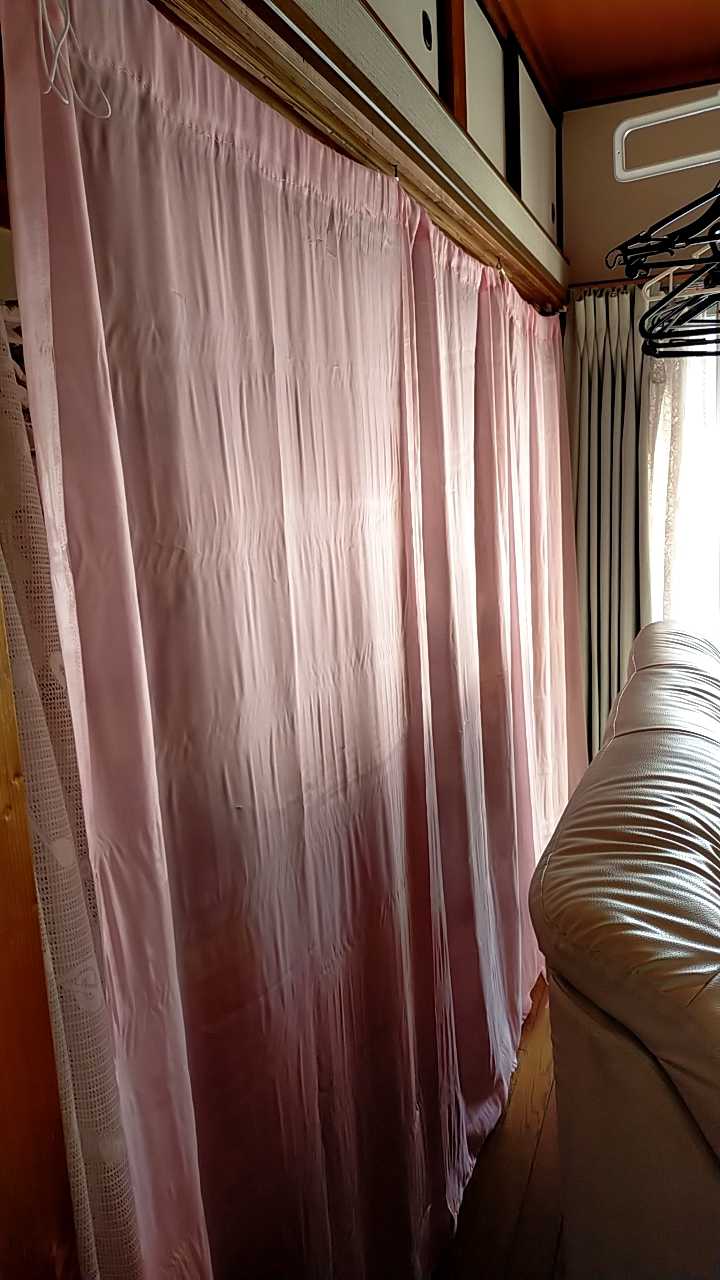 おはようございます♪最近お家で頑張ったことは カーテン作成!といっても 押入れのふすまを外してしまっているので そこに 以前は三枚ほど 布をつけていたんですが、何かおかしくて 何とかしたいと思ってたところ 知人から 薄いきれいな生地をいただいたので これを使おうと('_')2m60cmの押入れの巾。 90cm巾の生地を1m80cmずつ3枚カットして 上も下も 縫うという作業 テレビを見ながら♪ 何とか取り付けれた時は 嬉しかった~あと 美味しいおやつ。 家族のお土産です。熱いお茶でいただきました~<m(__)m> ではこの辺で~ (@^^)/~~~