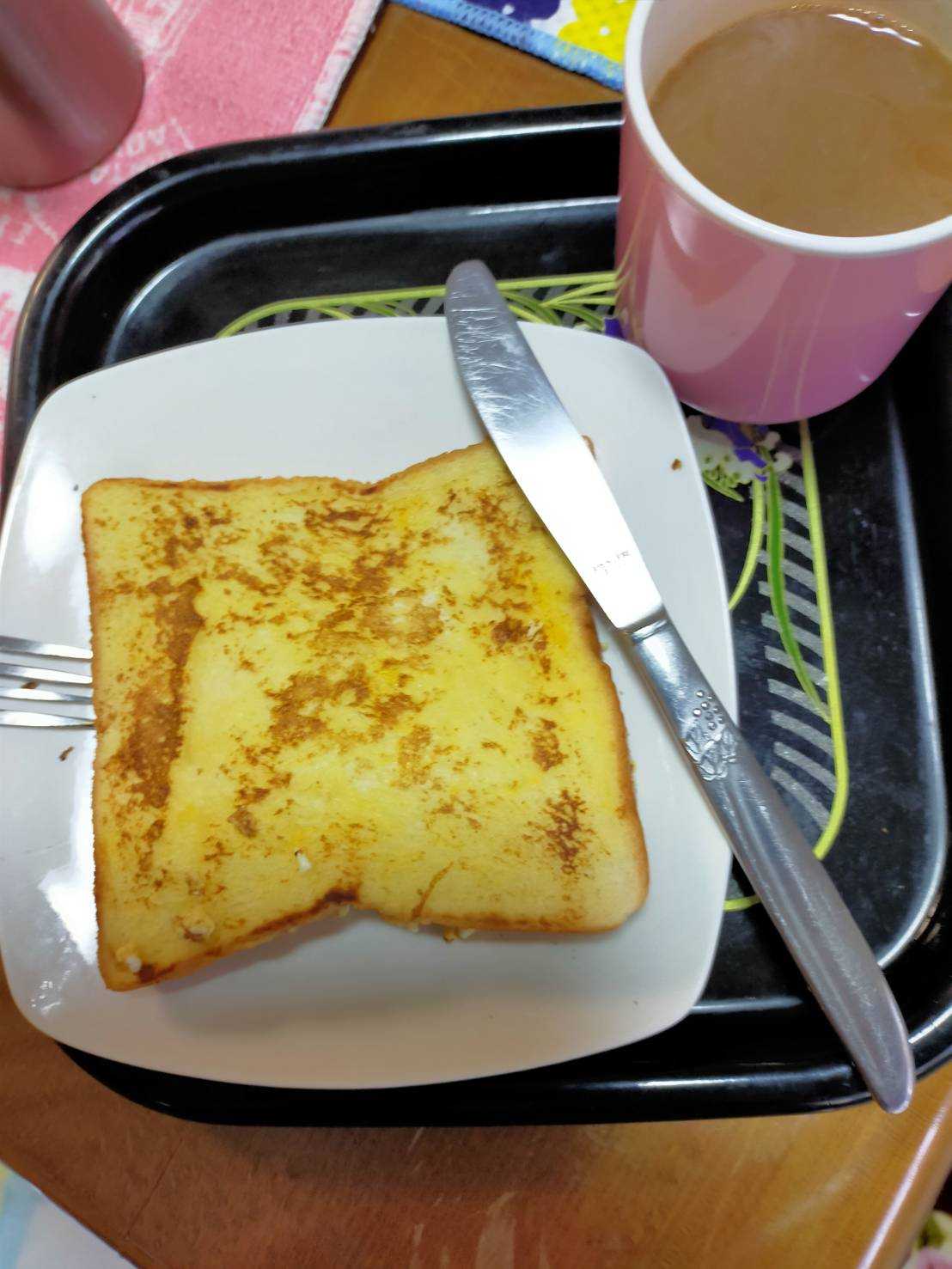 こんにちは~♪ 今日はいいお天気です。洗濯物いっぱいできましたー('_')午前中 娘がやってきたので おしゃべりしお買い物も一緒に行った。車で乗せてもらえ 楽しかった♪先日 家に普段は買わないものが。牛乳友人が来た時 買ったもの。美味しいし 栄養もあるので 使おう食パンもあったので 作ろうと思ったのは フレンチトースト久しぶりで作ってみた。美味しいけど 何か物足りなくて('◇')ゞ翌日 まだ牛乳もあるし 今回は美味しく作ろうと!(^^)!やはり 一回目より二回目が美味しい♪ たまには いいでしょう♡ではこの辺で~(@^^)/~~~