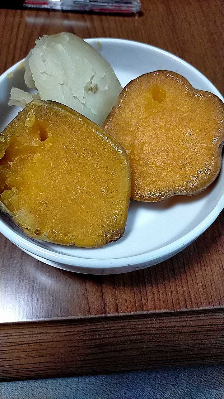 こんにちは~♪お正月も終わり 食材は食べきってますかねー私は なるべく食べきるため 買い物をひかえあるもので お料理してます。で ジャガイモを使いきろうと思い 炊飯器を使い 蒸したのです。 確か じゃがいも と思って( `ー´)ノ そして蒸しあがったのが これこの黄色いのは サツマイモ?!不思議でしたが 甘くて美味しいので良かったです。このまま食べたり 残ったのはお野菜やハム 卵と合わせて ポテトサラダ作りました。美味しかったでーす。 今日は冷凍してた豚肉を使い 細かくして 他の食材とも混ぜて 餃子の皮も使いきるため 簡単餃子を作ります。 美味しくな~れではこの辺で (@^^)/~~~