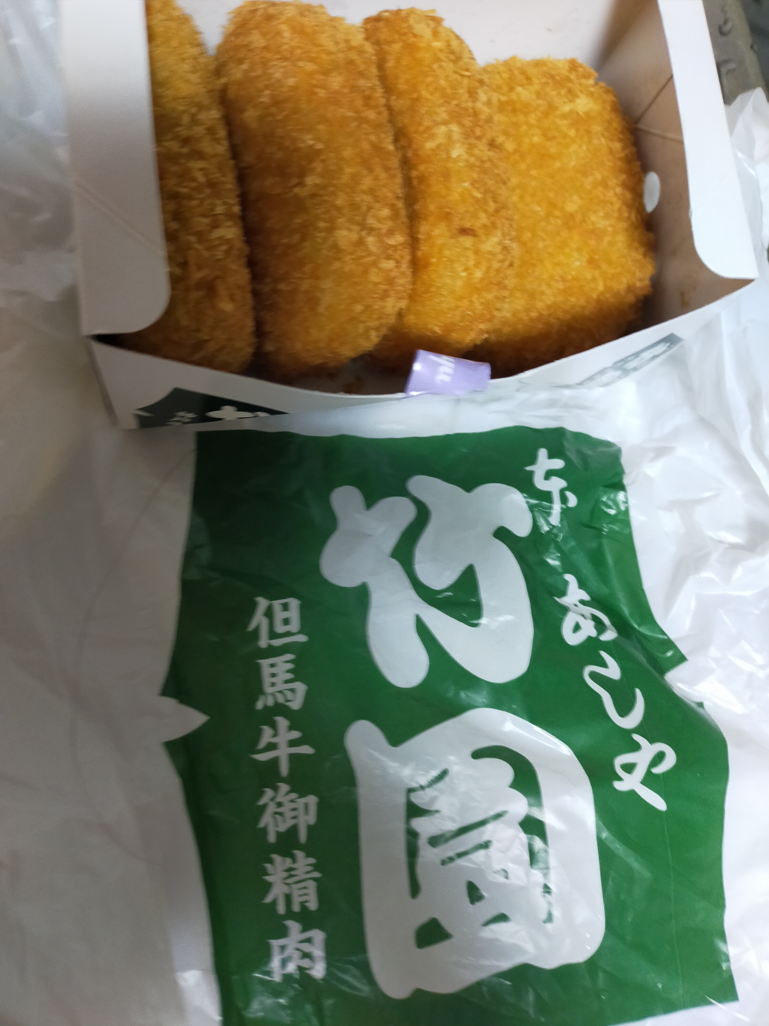 おはようございます♪先日のランチの後は 大阪駅周辺をかなり歩きおしゃべりもしながら お茶するため カフェを探す。友人が昔懐かしいので 英国屋に行こうって言ったので 梅地下で行ってみる。でも 雰囲気が違う とか言って 当たり前一緒だったら怖い なんて言いながら又歩く。結局 阪急グランドビルの30階 ここにしようって店名見たら 英国屋 だった。 皆で笑う笑う。 それにしても 平日でこの混みようすごいねー と お話は尽きず 楽しかった~帰り 友達のおすすめのお店でお買い物阪急百貨店 デパ地下で買ったのは けっこう有名なお店 芦屋コロッケ竹園のコロッケでーす。 前から食べたかったので 美味しくいただきました~ 一個170円位したので 私には高級品でした♡ではこの辺で~(@^^)/~~~
