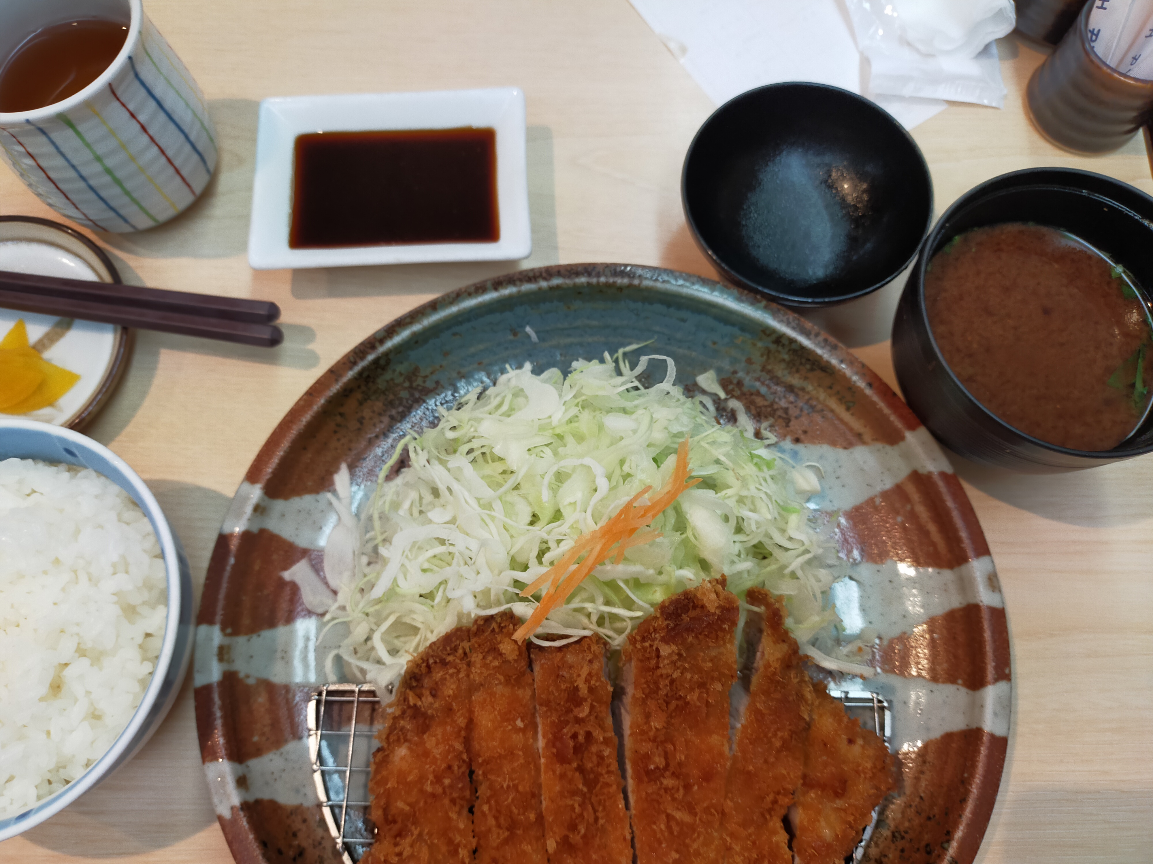 こんばんは~♪今日は小雨の日でした。久しぶりに 娘とお出かけしてきた。平日のお休みは 珍しいと娘も喜んでいたなぁ用事の後 一緒に阪急三番街の方へ行き ランチタイム♪ 何でもいいよ~ と二人で選んだのは 美味しそうなトンカツでした。小鉢に少量 という 友人たちとは違い トンカツ! やはり 年の差は否めない笑娘は厚切りを選び 私は普通を ああやっぱり こういうの美味しいなぁ近くの サラリーマン風の方たちはキャベツ大盛とか言っていた。見ると ほんと大盛のキャベツ 次もし来るなら キャベツ大盛 なのだー♡ではこの辺で~ (@^^)/~~~