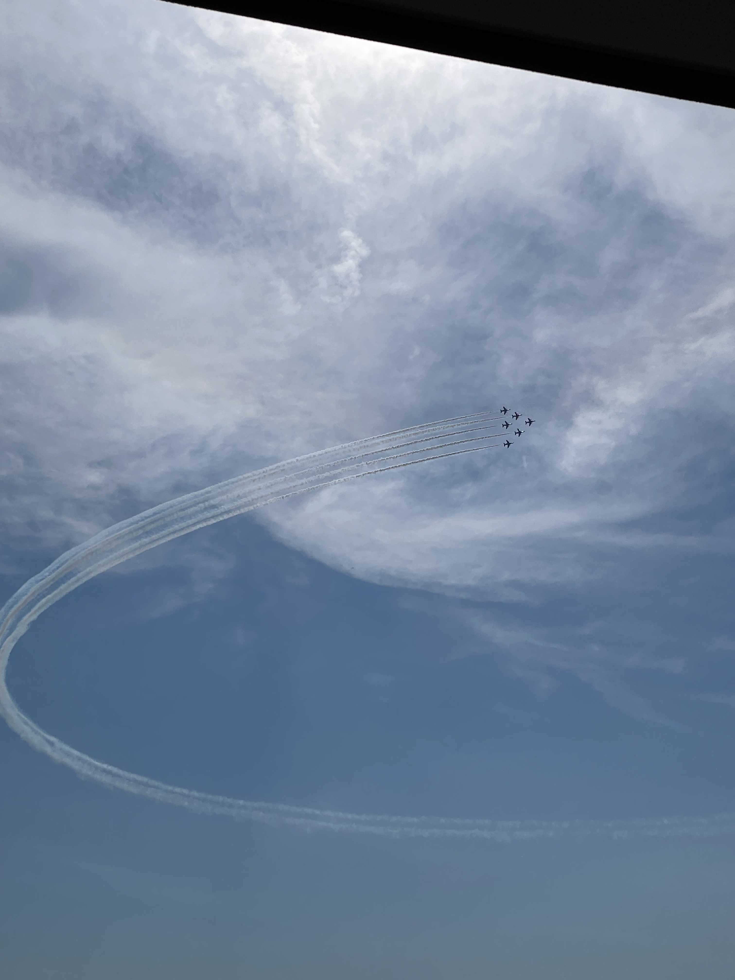 おはようございます♪ 先日の土日は 大阪の空に ブルーインパルスが飛んで 素晴らしかった~('_') 友人たちからも リアルタイムで撮った 動画や写真送ってもらえ 嬉しかった~私は ユーチューブで ライブカメラで楽しめました♡ほんと かっこいい!ではこの辺で~ (@^^)/~~~
