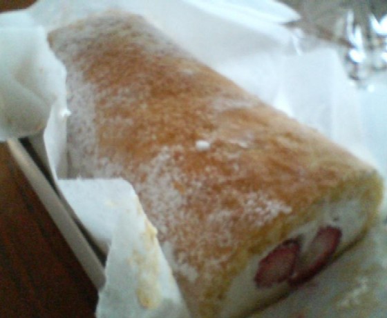 コレコレ。見たまんま、これがその苺のロールケーキ。今になって恋しくなったので載っけますvこの前の日曜日、予定が無くなっていきなり暇になったので作ったの♪+*゚2、3口食べて丁度いい大きさの箱に入れて冷蔵庫に入れておいたの。気がついたらシンクにその空箱だけが…(・ロ・+)!!!私の食いしん坊は遺伝。見ていたら欲しくなってきたんですが…( ̄¬ ̄+)また作ろうっと。