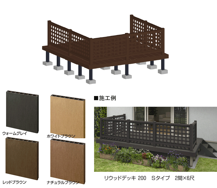 ウッドデッキ 人工木 樹脂 リウッドデッ商 品 詳 細寸 法【デッキ】間口1.5間(W)2651mm×奥行9尺(D)2720mm束柱タイプ:Tタイプ高さ(H)400〜550mm【ステップ】ステップ5型 Sタイプ 標準2段仕様※側板下部を切詰めて高さ調整が可能です。【フェンス】間口(W)2400mm×奥行(D)2400mm×高さ800mm×奥行(D)1800mm★左奥隅部分は躯体部からフェンス端柱まで約197mmのすき間が空きます、予め取り扱いショップ大和住建 楽天市場店【この商品の詳細を楽天で確認】ウッドデッキ 人工木 樹脂 リウッドデッ商 品 詳 細寸 法【デッキ】間口1.5間(W)2651mm×奥行7尺(D)2120mm束柱タイプ:Tタイプ高さ(H)400〜550mm【ステップ】ステップ5型 Sタイプ 標準2段仕様幅(W)650×奥行(D)701mm×高さ(M)556mm※側板下部を切詰めて高さ調整が可能です。【フェンス】間口(W)2400mm×奥行(D)1800mm×高さ800mm×奥行(D)1200mm笠木:L=1320取り扱いショップ大和住建 楽天市場店【この商品の詳細を楽天で確認】気になる情報リアルタイム更新中