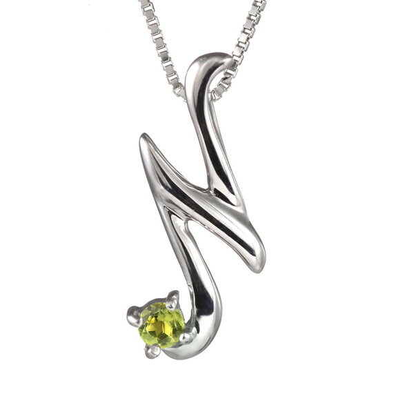 ギフト対応イニシャルイニシャルイニシャルペンダント With マイラッキーストーン。人気のイニシャルペンダントに貴女を守ってくれる誕生石が付いたからいつも身につけていたい。大切な人へのプレゼントに、二人でペアに幸せを呼ぶ、ベストペンダント。プレゼントに最適。イニシャル「N」 イニシャルモチーフ8月の誕生石(ペリドット)送料無料 保証書付ネックレス 約 40cm K10WG ペリドットトップ部分の大