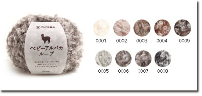 [素 材 ] アクリル45%アルパカ(ベビーアルパカ)36%ナイロン10%ウール9% [重さ・長さ] 30g 約52m [使 用 針] 棒針13〜14 号かぎ針10/0 号〜7 mm [標準ゲージ] [使用糸量 ] 婦人プルオーバー 9〜10玉紳士プルオーバー 11〜12玉 6は今季終了しました。 ご注意 : モニターにより、色の見え方が 実際の商品と異なることがございます。また注文が集中した場合など、発送が遅れたり、店頭販売と在庫が重複しているため在庫切れで販売できなくなる場合がございます。 希少性の高いベビーアルパカを混紡したループヤーン。ふわっとやわらかい肌ざわり。