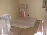 今日、現場の進捗状況を見てきました。 1階の様子 2階の様子天井のピーリング貼り、廻縁の取付けが全て終わっていました。ミルクリーク標準の廻縁(SAUDER製?)ですが、デコラティブで大きくて、ちょっとびっくり(苦笑)展示場でも、そんな細かい興味のあまり無いところは、良く見ていなかったってことなのでしょう(笑) ケーシング取付け中ケーシングの取付け後は、こんな風に固定しておくのですね。 シンプソンのドア取り付けを待つドアが入荷していました。 貼り付け待ちのコルクタイル我が家では、標準設定のフローリングのミルクリークオークフロアは、ごく一部のみしか使用しません。床材は、畳の部屋を用意しない代わりに、コルクタイルを多用します。コルクタイルの定価は少し高いのですが、・2階の防音用のシートが不要になる・購入価格は以外に安い・施工価格がフローリングより安いということで、2階は全面コルクタイルとしてしまうことにより、以外とトータルコストが安くなりました。でも、この品番のコルクタイル、品種の整理のためか、製造中止になるようです。将来の補修は、違う品番のものでまかなうしかありませんね、残念。。