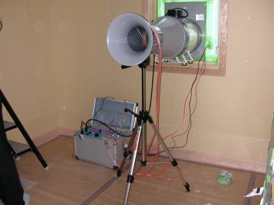 東急ホームでは、標準では気密検査は行ないません。しかし、私の高気密・高断熱へのこだわりとして2回の気密検査を予定していました。今日は、一回目の気密検査でした。今回は、建物そのものの気密を測定するため、建物に故意に空けている開口部全てをテープで目張りしてもらいました。 気密測定風景 気密テスター 測定結果気密測定の結果は、後ほどレポートが上がって来るまで正式な計算結果は分かりませんが、概算で0.65cm2/m2程度とのことです。何とか希望のR2000のC値をクリア出来ました、よしっ!うまく行けば、心の中の目標:0.5cm2/m2をクリア出来ないかと思ってましたが、残念ながら、そこまでは行きませんでした。しかし、グラスウール断熱でここまで行けば、結構良い部類だろうと思います。また、C値に保証の無い東急ホームとしては、今回の値は、相当良い値と言えるでしょう。聞いた話によると東急ホーム標準では、1cm2/m2台が多いようですので、約半分の値になります。これは、次の結果だろうと思います。・契約前からC値1cm2/m2以下目標との仕様要望書を出していたこと・2回の気密検査をすることを伝えておいたこと・気密施工を出来る限り注意して行なって欲しい旨を伝えておいたこと・建物形状がシンプルな長方形の総二階であること気密測定後に思った点があります。我が家では、一ヶ所風呂場にシングルハングの日本製のサッシがあるのですが、これが気密が良くないとも話を聞いたことがあります。ここを目張りしてみてどうか、測定して確かめれば良かったなぁと。もしかしたら、0.5cm2/m2もクリア出来たかも・・残念。。。なお、コンセントは未だ付いていませんが、我が家では、東急ホーム非標準の気密コンセントを使用します。