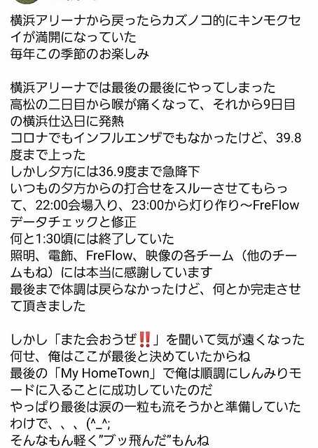 ご自身のライブ中の体調のことお話されていました。