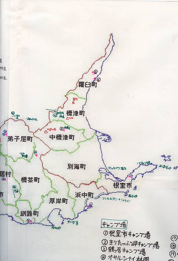 夏の北海道へ向けての下調べを毎日少しずつ進めているのですが。 地理を頭に入れるためにも、自分で白地図にポイントを書いてみようと思い、作成中の地図。 白地図のソフトをダウンロードし、解凍ツールもダウンロード。 印刷して、のりで貼ってつないで…。 温泉、キャンプ場、林道、その他見所を書き込んでいきます。 工作みたいでなかなか楽しんでます。