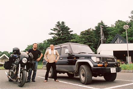 吹き上げ露天での朝。 両隣には トヨタ ハイエースが止まっている。 両方とも定年退職したおじさんだった。右の車をふと見ると、発電機と何かのアンテナが外においてある。 おじさんと話すと、BS用のアンテナだとか…。 そのうち、左隣のおじさんも加わり、話し始める。 左のおじさんは、「やっぱり、冷蔵庫がないとね~」 そして、「僕は朝、パン食だから牛乳とバターが必要なんだ」と…。 う~む、BSアンテナといい、パン食といい、 夜は外の音、静かな車の空間を楽しみ、食パンがあればそのままかじりつき、缶コーヒーで流し込む俺には考えられない。 車の旅を重ねるごとにそういうふうになっていくのかな? 俺の30年後くらいはどうなのだろう? 今のままでいたいな~なんて思う。 そのうちもう1人話しに加わった。 暑寒別岳の麓、増毛町の養蜂場のおじさんだ。この人は、時期が来ると兵庫から駆けつけるらしい。地元が同じなのでかなり盛り上がり、会社の名刺(1度も仕事で交換したことがない名刺である。旅の途中でしか使わない?)を渡したら「また兵庫に帰って機会があれば行くよ」と言ってくれた。 もう1人、近づいてきた。どこの人かは忘れたが、軽のハコバンでまわっているらしい。 この人、苦手だった。 北海道はかなり来ているようだが、やたらと自分の話ばかりしていて楽しくない。会話ではないのである。ずっときいていると、説教されているような気になってきてイライラする。 少しSLの話をしていたら、地図を持ってきて、「そうか、僕は昼からゾウモウに行ってみるよ」と。 ゾウモウ??? 少しして気がついた。 ああ、マシケのことか…。 確かに北海道の地名は初めてなら読めないけれど…。さっきまであんなに北海道について自慢げに語っていたのに…。 ちなみに、増毛町には日本最北端の造り酒屋 国稀 がある。 そうこうしているうちに昼前。 皆に挨拶して出発。 少し丘を散策。 ジャガイモの花?だろうか。 丘を走るライダーを眺めたり、麦畑を見たり。 美瑛を出る。まずは雨竜沼湿原を目指す。 道道432号に入り、アップダウン、ダートが途切れ途切れ続く道をのんびり走り到着。 思ったよりも車が多い。 管理所に行ってみると、どうも日暮れまでに帰ってこれないようだ。 ヒグマも怖いし、ここは引き返す。 引き返し、北上。 幌新温泉というところで風呂に入り、さらに北上。そして霧立峠で一服。 朱鞠内湖を過ぎ、国道275号の美深峠。 深い谷を渡る橋を越えた時。西日に照らされる一面の森。1度通り過ぎたのだが、引き返す。 さっきまでの光は弱くなっていた。 ほんの一瞬の景色。素晴らしいものだった。思いもよらないところでの絶景ほど心にしみるのだろうか? 今でもあの光は脳裏に焼きついている。 国道40号に出て、また北上。 そこで衝撃の看板が…。 「函岳方面 林道通行止」 日本海、オホーツクが両方見渡せるという函岳頂上。 去年は霧に阻まれ、今年は通行止…。 まあ、仕方ないか。また来年だ。 日が暮れて天塩川キャンプ場の駐車場。 天気が悪そうなのでテントを張らずに車中泊。 いつものように酒を飲んでねた。