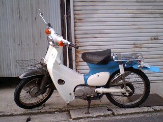 午前中、境港の高校にバレーボールを教えに行ってきた。 バレーしに行ったのにバレーシューズを忘れたおバカな幾三…。 バレーしていると自分の高校のときを思い出すな~。 バレーしかしてなかったよな~。 その頃の思い出話もまた書こう。 4時半くらいに家に帰ってきたらマフラーが届いていた! さてさて、すぐに作業開始! 今ついているマフラーを外して新しいマフラーをつけるだけの簡単作業。 作業が終了後、エンジンをかけてみる。 が、キックする時になんか固い。 よ~く見るとマフラーのカバーみたいなものと当たっているではないか…。 ムイムイ押してもどうにもならない、ええい、削ってやれ! ヤスリで削ること30分、やっと当たらないくらいまで削れた…。 ふぃ~、疲れたぜ。 さあ、皆様お待ちかね(ん?誰も待ってないってか?)、幾三カブの完成である。 ううむ、やはり前のマフラーより見た目が少し劣る。 走ってみると少しもの足りない感じ。まあ、すぐに前の感覚は忘れるだろう。 どうせゆっくり北海道を走るんだから別にいいや。 幾三カブではなんか寂しいので名前は無いかな~? 前オーナーから取って「さぼりまん号」にするか? なんかないかいな~。