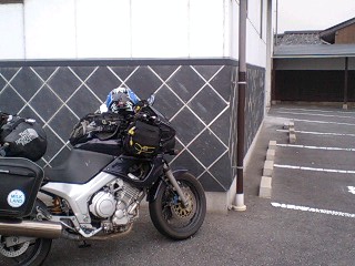 一昨日のフェリーに乗った風の旅人さん。 昨日は舞鶴で泊まって今日の昼過ぎに松江通過だろうと思っていた。 夜遅く家に帰ってパソコンを開くと、なんと舞鶴からのナイトランを決行していたのだ~! そして、午前5時45分、ライダーハウス峠?付近に出没~(笑) タイヤを見ると本当にツルツル! 襲撃のついでに土産もあった。 2007年のホクレンライダーフラッグ シゲチャンランドのひょうたん野郎ストラップ! フラッグは7月15日からの配布、シゲチャンランドは幾三が17歳の原付ライダーと一緒に行った時は定休日だったんだよね。 いや~、嬉しいな。土産もだけど、何より訪ねてきてもらったことが!