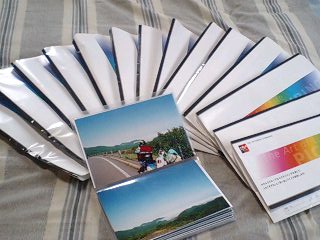 昨日の夕方、久しぶりにいつものカメラ屋へ。 「帰ってきたか~!」と店長さん。 フィルムを15本お願いしたら「2時間でできるよ~!」と。しかも1本あたり300円値引きしてくれた~! 用事を済ませて2時間後、22000円分の写真が出来上がった。 あと携帯で撮った写真が400枚。 通った道や途中で見つけた看板、温泉など。 これから整理してアップしていくぞ~!