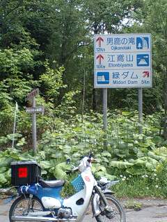 さくらの滝を見てからは別行動。 幾三は去年も行った江鳶スカイラインへ! 道道1115号から入る。 緑ダムへの分岐からダートになる。 ひたすら走っていたのだが江鳶への道を行き過ぎてしまったようだ。 分岐を過ぎてからかなり走ってしまったようなので男鹿の滝まで行ってみる。 バイクで走れるのはここまで。 この先は徒歩だ。 細い道をしばらく歩くと滝が見えてきた。 なかなかいい感じの滝。 日も差していてきれいだ~。 さくらの滝とは違うよさがある。 しばらく見とれていた。 さて、通りすぎてしまった江鳶スカイラインの入り口を探すかな~。 のんびり林道を走り始めた。