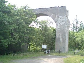来運公園を出た幾三。 途中、近道をしようと思って細い道を走っていたのだが、ジャガイモの種芋をつくる畑だった。本当は立入禁止だったようで、国道に抜ける道はゲートがあって通れなかった。 大回りをして予想外にガソリンを使ってしまった。 国道244号沿い。斜里側から走ってきた幾三。 根北峠から北側へ少し走ったところに真ん中を取り壊されたコンクリート橋がある。 通称、越川橋梁。 正式には第一幾品川橋梁という。 国鉄根北線のために建設された。 多くの労働力を使い、建設されたそうだ。 当時は戦時中。 鉄がなかったので代わりに使われたのは竹。 根北線は昭和32年、国鉄根北線として斜里-越川までは営業が開始されたが、45年廃止。 このコンクリート橋の上を列車が通ることはなかった。 国道の拡張工事の際、アーチの中央部が撤去された。 タコ部屋という労働環境で働いた人達によって作られた橋梁。 建設の際、多くの労働者がの命を落としたという。 ひどい労働条件の中、運良く出れたとしても他の仕事について飯が食えるかどうかわからない時代。 1度も使われることなく役目を終えた、いや、役目を果たせなかった橋梁だ…。