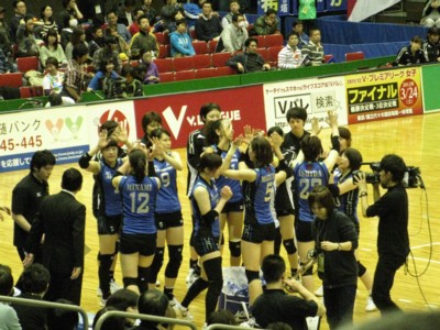 今期のVプレミアリーグ開幕戦を見に行ってから、知らぬ間に岡山シーガルズファンになってます。 スパイク力はそんなに無いけど、拾ってつないで点を取る粘りのバレー。 高校時代、平均身長170cmのチームでバレーをやっていた幾三には、シーガルズのプレースタイルは見ていて楽しい。 高校生セッターも開幕の頃よりトスが上手くなった気がします。レシーブも上手い。 で、今日の試合。 先に試合をしたJTが東レにストレートで負けたので、岡山が勝てば4強決定。 仕事しながら携帯で速報見てました(しっかり仕事せぇよ…!?)。 結果は、3-1でトヨタ車体に勝ちました~。 ってことでセミファイナル出場決定。 仕事が終わって島根県民会館のチケットぴあへ。 18日、岐阜へ行ってきます♪
